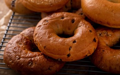 Булочки бейгли з чотирьох інгредієнтів готуються всього 15 хвилин без дріжджів та довгого підняття тіста. Родзинка страви — карамельні шматочки фініків, що гарно пасують як до солодких страв, так і до солоних.
