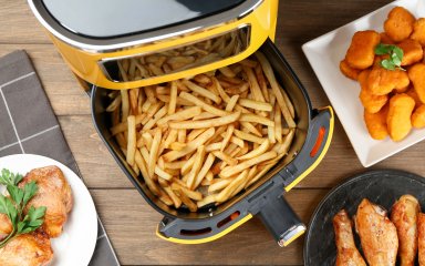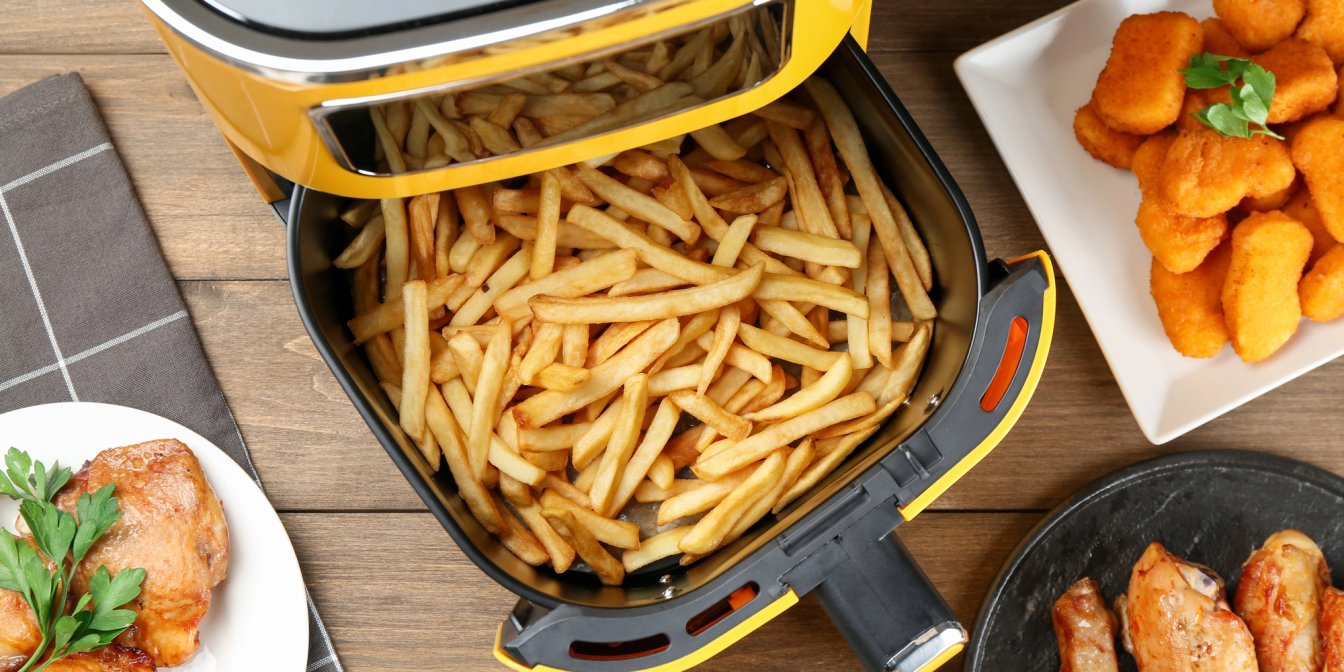 Картопля фрі в аерогрилі така ж смачна, як і картопля у фритюрі, але значно корисніша. Вона запікається, а не смажиться, і потребує мінімум олії. Головне — не забувати струшувати кошик, щоб брусочки картоплі просмажилися рівномірно.