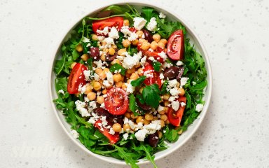 Салат з нутом, фетою і руколою — швидкий середземноморський рецепт без плити