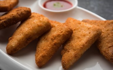 Виклади готові трикутники на паперовий рушник, щоб прибрати зайву олію, і подавай одразу.
