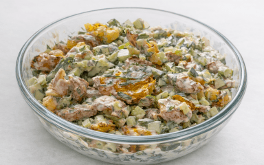 - Огірок додавай перед змішуванням, щоб салат залишався свіжим і соковитим.