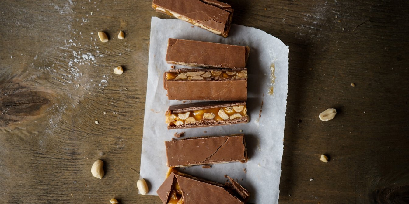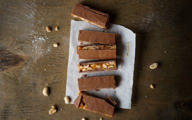 Щоб приготувати шоколадні батончики з арахісом і фініками подрібни в блендері сухофрукти без кісточок разом з арахісовою пастою, змішай масу з горіхами та повітряним рисом. Зверху полий розтопленим темним шоколадом. Коли шоколад застигне, наріж масу на батончики. Ці батончики — корисна альтернатива готовим солодощам. Для них можеш обирати свої улюблені корисні складники.