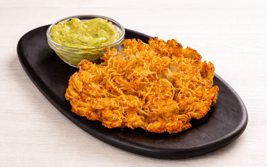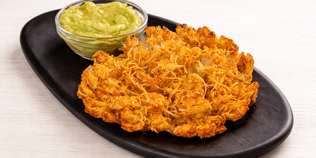 Хрумка цибуля-квітка готується з цілої цибулини, яку надрізають пелюстками, панірують шарами й доводять до золотої скоринки в духовці або у фритюрі. Якщо готувати цибулю в духовці, то отримаєш легшу версію з сиром, а якщо у фритюрі — максимально хрустку.
