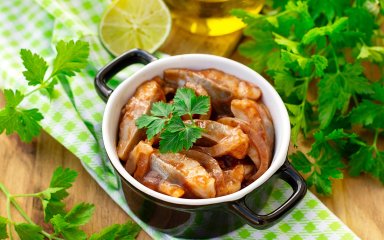Оселедець в томатному соусі готується всього за 15 хвилин, але потім маринується щонайменше 8 годин. Маринад робимо з томатного соусу, оцту та олії. Спробуй приготувати оселедець за цим рецептом і отримаєш смачну та пікантну закуску.