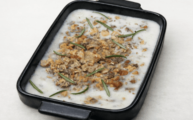 За цим рецептом домашній смалець готують з трьох видів мʼяса: сала, підчеревини та копченого шпондера. Спочатку витоплюють жир, а потім додають спеції, цибулю та яблуко, які балансують жирність. Спробуй приготувати домашню намазку до чорного хліба або грінок.