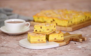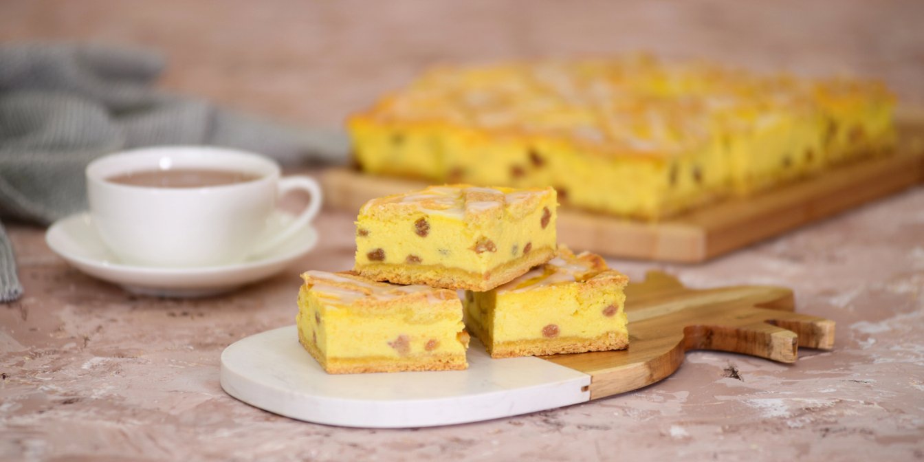 Це один з найпопулярніших домашніх десертів Латвії. У сирну масу обов’язково додають родзинки, а в пісочне тісто — трохи розпушувача та кориці. Починаємо з того, що замочимо родзинки у теплій воді.