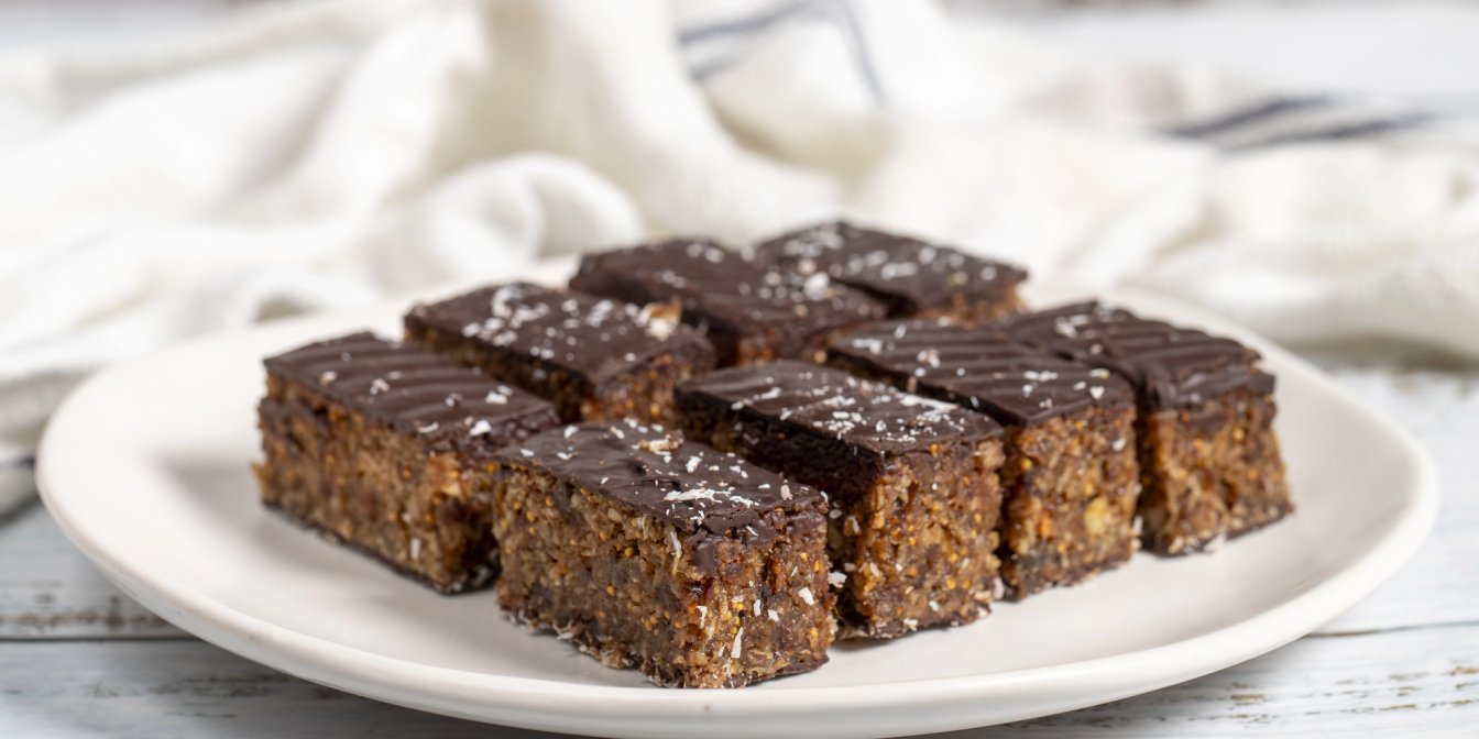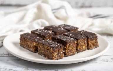 Десерт з фініків і шоколаду сподобається тим, хто любить різні варіанти фітнес-батончиків або енергетичних кульок. Він готується на основі подрібнених фініків, горіхів і темного шоколаду. Завдяки охолодженню інгредієнти зберігають свою текстуру, а маса легко ріжеться. До речі, цей десерт містить 53 калорії на порцію.