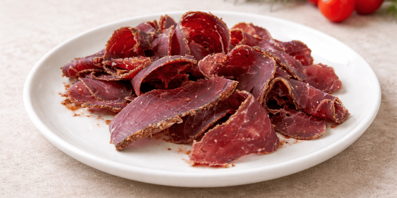 Смачного! Домашня бастурма виходить щільною, ароматною й добре ріжеться тонкими скибками. Вона підходить для холодних закусок, бутербродів або м’ясної нарізки.