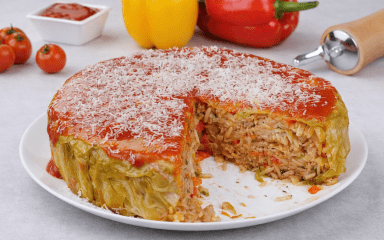 Цей рецепт створили після того, як приготували ліниві голубці в каструлі. Тут також нам не доведеться крутити маленькі голубці. Лише перекладемо відварене листя капусти шарами обсмаженої начинки з фаршем. У кроках приготування докладно розписано, як формувати пиріг «Лінивий голубець».