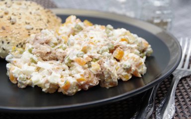 До наших рецептів з минтаєм додався цей смачний салат. Він дуже простий, і на смак сподобається тим, хто любить варених раків. Святковий салат з минтаєм заправляємо майонезом.