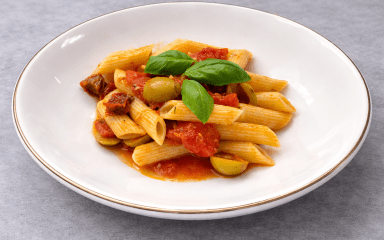 Паста путанеска — це італійська страва, а значить швидка в приготуванні та має насичений смак. Спочатку готуємо ароматну основу на томатному соусі з анчоусами, каперсами та оливками, без складних технік на одній пательні. А потім просто змішуємо її з пастою пенне.