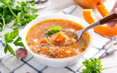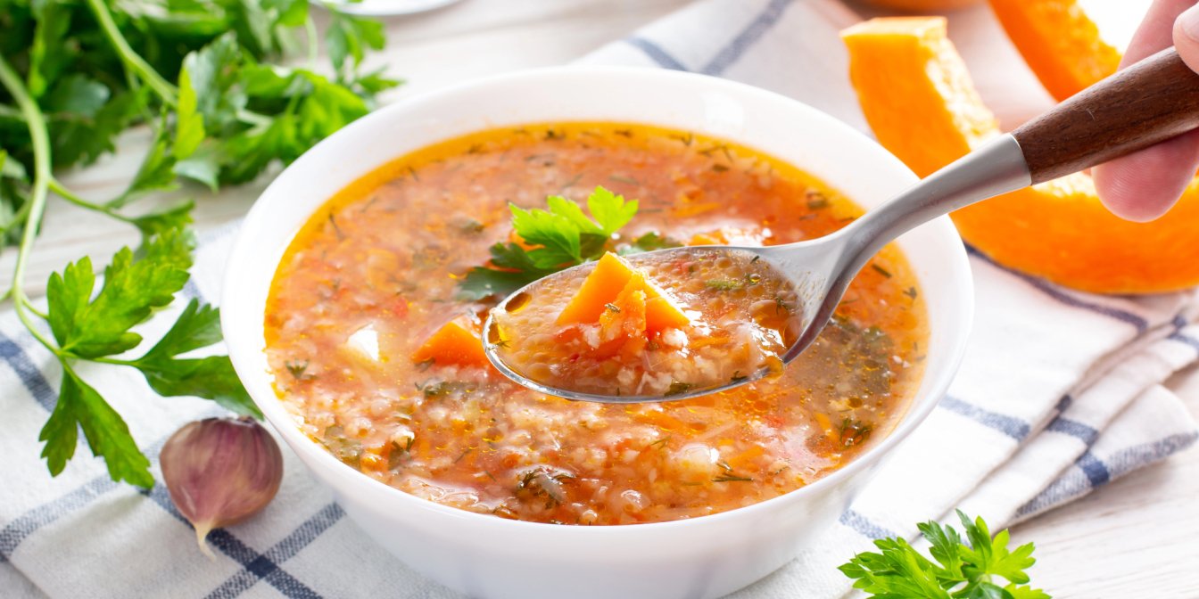 Що приготувати в піст або коли хочеться відпочити від м’яса? Радимо гарбузовий суп з рисом та яблуками. Він не містить продуктів тваринного походження, тому підходить для рослинного раціону.