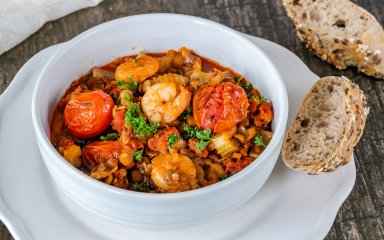 Найкращий обід чи вечеря — ті, які готуються в одному посуді й не потребують складних технік. Цей рецепт саме такий — з червоною сочевицею в томатній основі та креветками. Завдяки спеціям карі з креветками та сочевицею має насичений смак, а ще тримає текстуру навіть після заморожування.