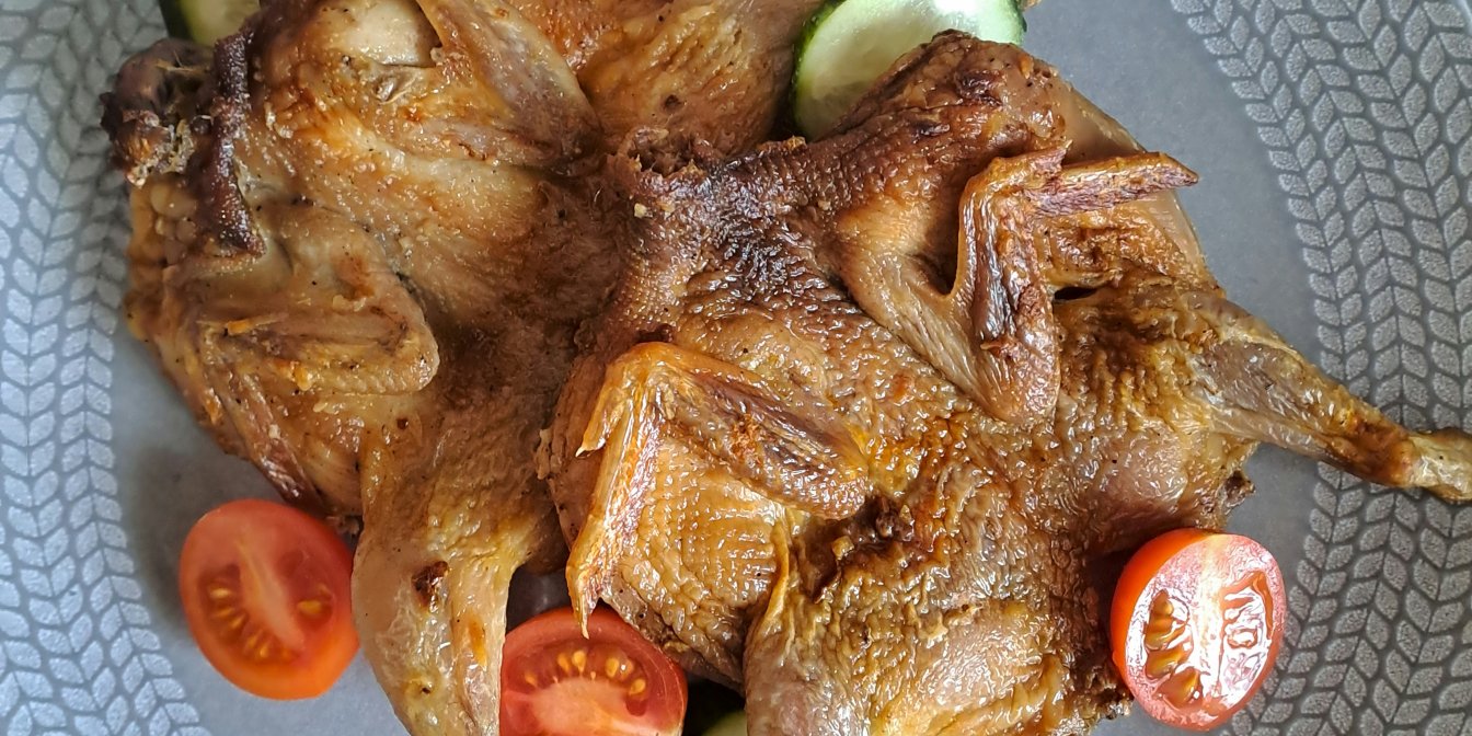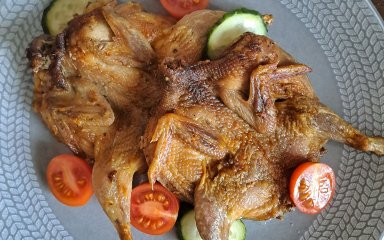 Авторка рецепта пропонує два варіанти. Перший — не чіпати тушки й просто натерти спеціями. Другий — розрізати їх вздовж у вигляді метеликів і відбити молотком. Замість свіжого часнику можна взяти сушений.