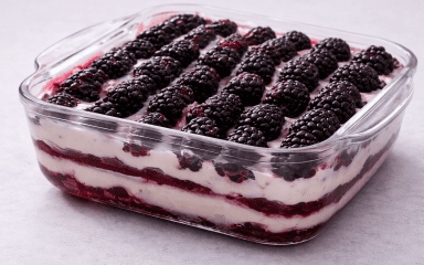 Ягідне тирамісу з ігристим вином — це не класичний італійський десерт, тут немає кави, проте є чорна смородина, ожина та легкі винні нотки. Повітряний крем з холодними вершками та маскарпоне балансує та доповнює ягідну кислинку.