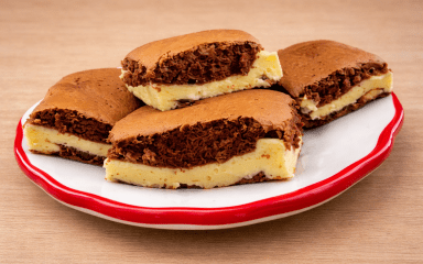 Цей пиріг зовні нагадує велику теплу ковдру завдяки сирній начинці, звідси й пішла така назва. Бісквіт готується на яйцях, олії та борошні, тому виходить м’яким і не пересихає. А смужки тримають форму завдяки кукурудзяному крохмалю, вони не розпливаються й залишаються чіткими після випікання.