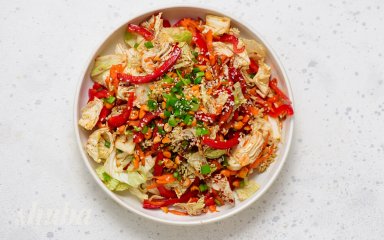 Азійський салат з пекінською капустою — це легка овочева страва з насиченою кисло-солодкою заправкою. Свіжі овочі, кунжутна олія, соєвий соус та імбир — класичне поєднання для східної кухні. Такий легкий овочевий салат можна брати з собою на роботу або подавати до мʼяса чи риби.