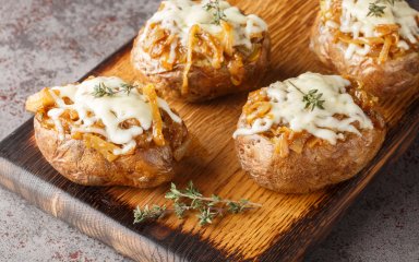 Картопля готова, коли ніж легко входить у середину. Злегка надріж картоплю зверху й подавай одразу.