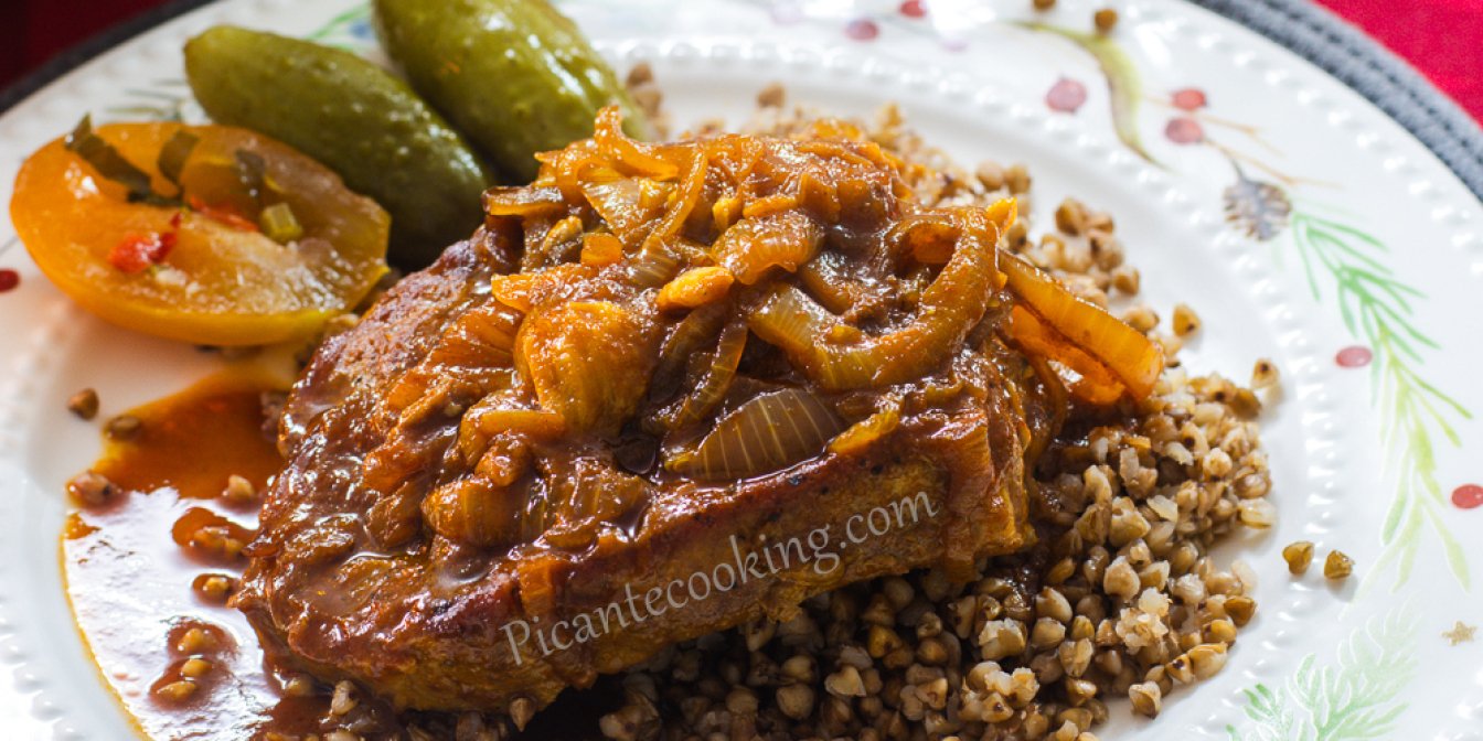 Свинина в цибулевому соусі — як приготувати ніжне м’ясо на чотири порції
