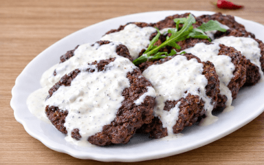 Печінкові оладки «Варшавські» зі сметанним соусом — рецепт на 600 грамів субпродуктів
