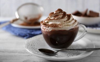 Останній штрих — тертий темний шоколад, шоколадний сироп або какао.