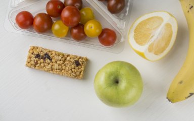 Фрукти. Яблука, груші, мандарини зручні та не потребують нарізання. Банан — швидке джерело енергії, але краще з’їдати його раніше, бо він легко темніє і псується. Сухофрукти теж підійдуть, але в невеликій кількості, бо вони концентровані за цукром.