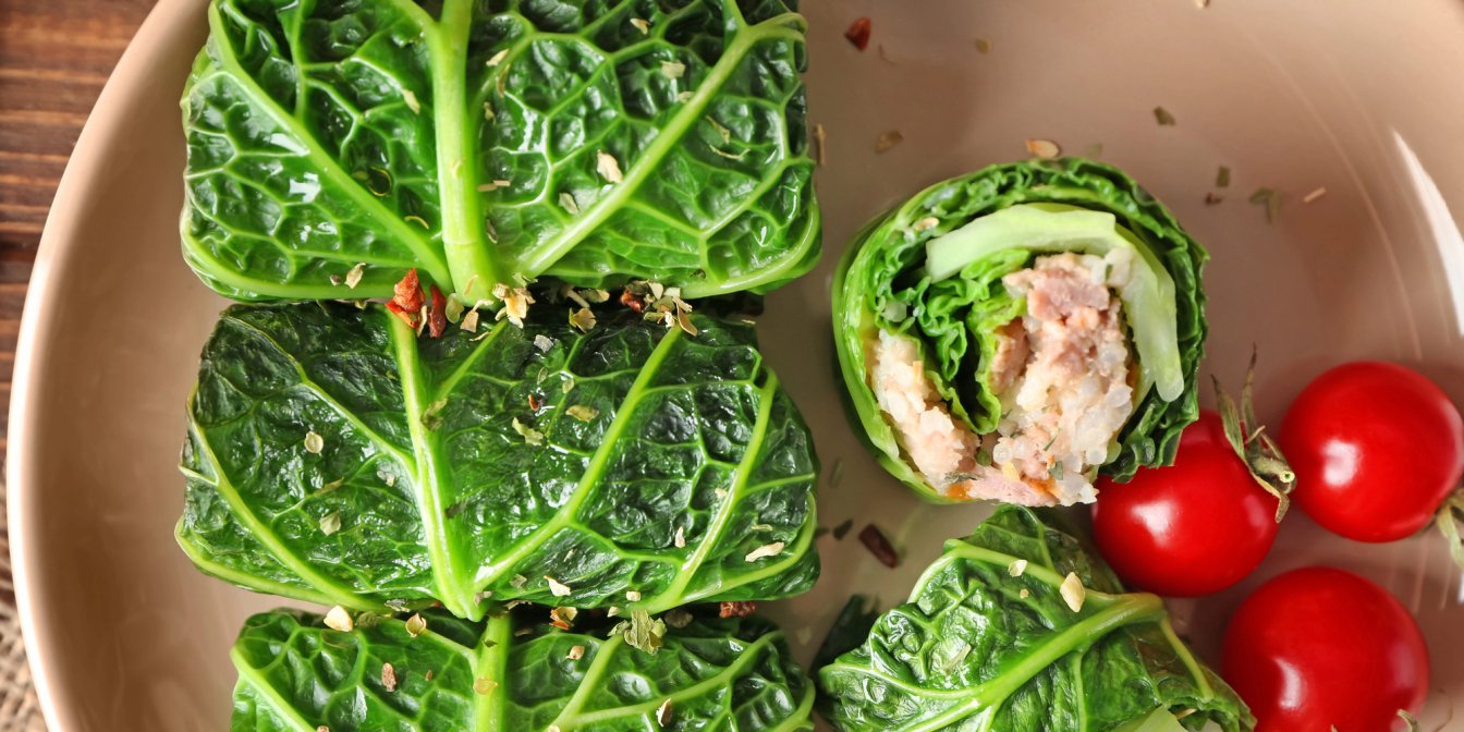 Якщо лист капусти жорсткий, злегка примни його руками або зріж товсту прожилку.