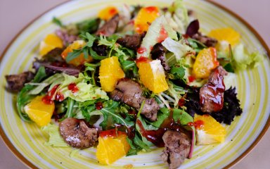 Рецепт корисного салату з печінкою та апельсином