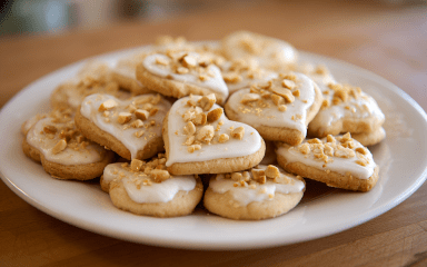 Це буде пісочне печиво з горіхами. За рецептом потрібен мигдаль, який замочують в окропі, чистять, а потім підсушють.