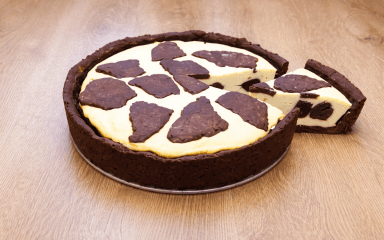 На цей рецепт нас надихнув тертий шоколадний пиріг із сиром. Вирішили прикрасити його по-особливому.