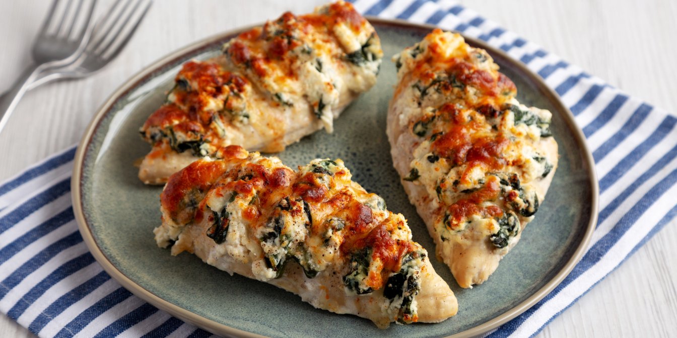 Курка гасельбек зі шпинатом і сиром — запечена грудка з начинкою