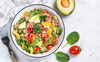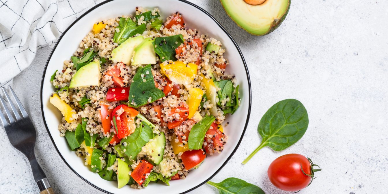 Одна чашка вареної кіноа має приблизно 8 грамів білка та близько 5 грамів клітковини. Крім того, вона багата на мінерали, зокрема магній, залізо та марганець, тому добре підходить як основа для поживних, але легких салатів.