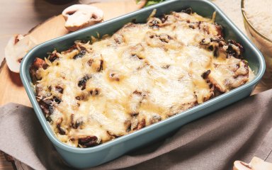 Ця швидка й проста запіканка з нутом і грибами готується під заливкою зі сметани, яєць і тертого сиру. У страві немає м’яса, але вона все одно ситна, адже нут містить рослинний білок.
