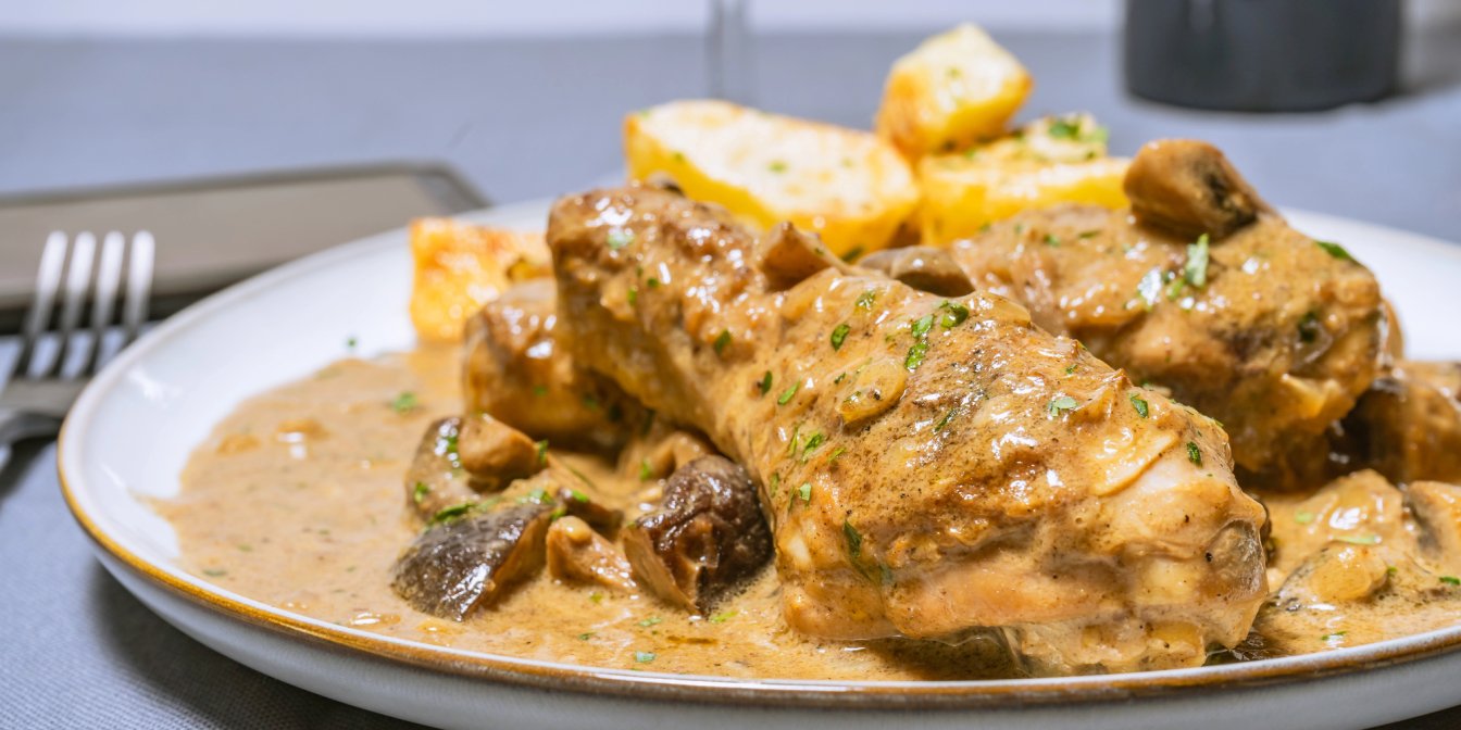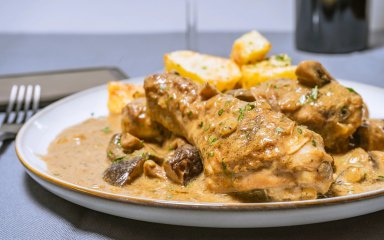 Якщо любиш готувати курячі ніжки смачно й швидко, то цей рецепт буде доречний на обід або вечерю. Спочатку ніжки обсмажимо, щоб досягти апетитної скоринки і на тій же сковороді зробимо простий соус. Курячі ніжки з печерицями запікаються 20-25 хвилин.