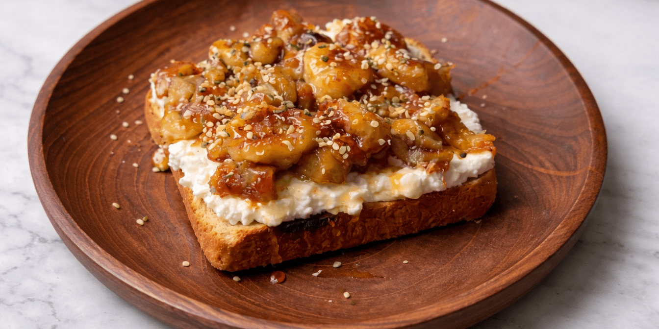 Сніданкові тости з карамелізованими бананами — рецепт із сиром і горіхами