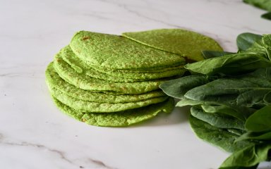 Лінива шпинатна тортилья готується без дріжджів: шпинат перебиваємо з водою, швидко замішуємо тісто й обсмажуємо коржі на пательні. Тісту потрібно відпочити перед розкачуванням, щоб коржі легше формувались і були еластичними. Це простий спосіб приготувати домашню основу для такос, ролів або легких закусок.