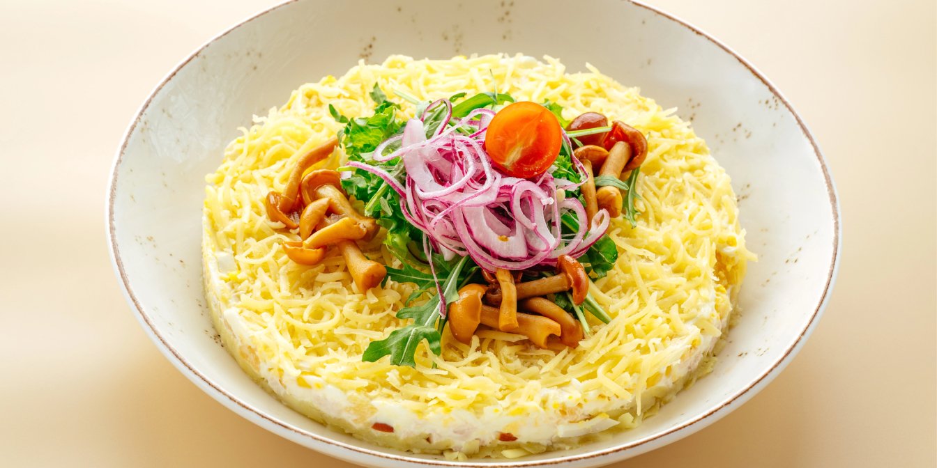 Салат «Великодній вінок» — з картоплею, грибами та консервованою кукурудзою