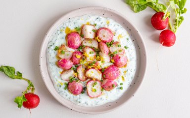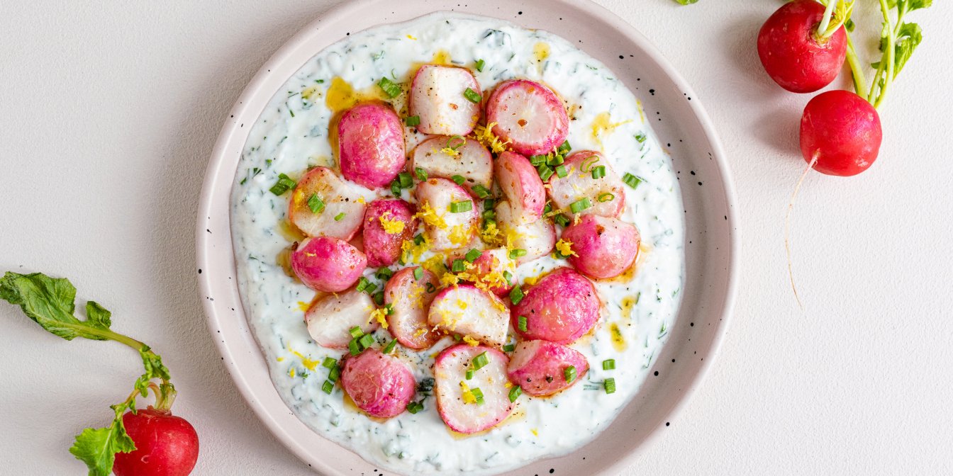 Запечений редис із йогуртовим соусом — ніжний гарнір з кремовою подачею