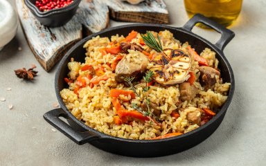 Як приготувати плов в аерогрилі — рецепт з м’ясом курячих стегенець