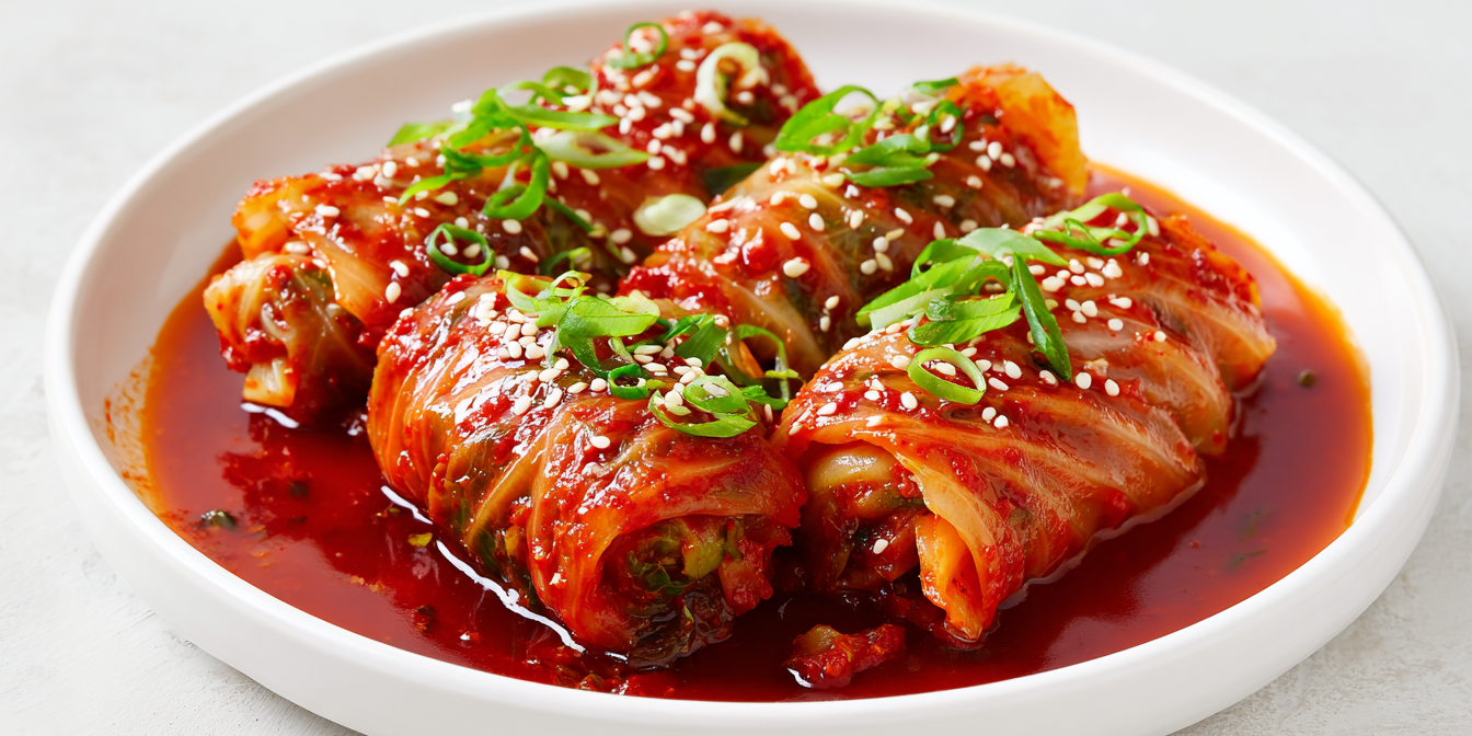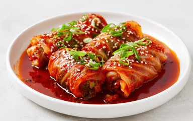 Пряні «голубці» по-азійськи — на вигляд, як українська страва, а на смак — справжня Азія, пряна та гостренька. Капустяне листя додатково маринується в спеціях, начинка виходить соковита й ароматна, а соус все гармонійно об’єднує. Приготуй цю страву азійської кухні, якщо захочеться чогось пряного та незвичного.
