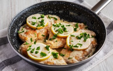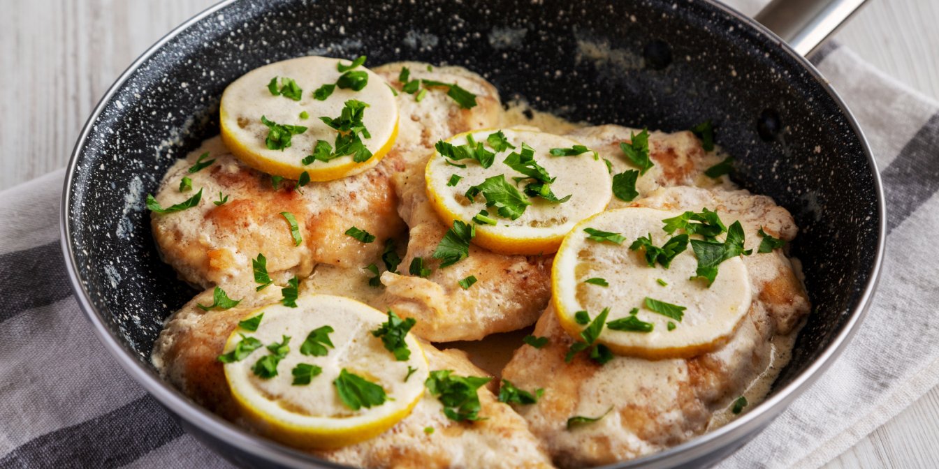 Курка по-французьки з лимонним соусом — це страва з тонко нарізаного філе, яке спочатку панірується і смажиться, а потім подається з шовковистим соусом на основі лимонного соку та масла.