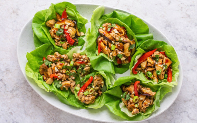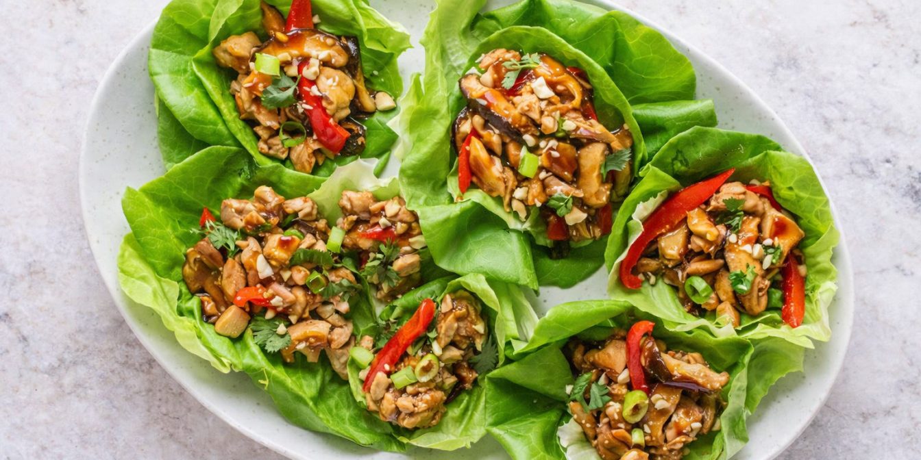 Кошики зі свіжого салату з куркою, грибами та солодким перцем — це легка азійська закуска з пряним смаком. Соковита курка, обсмажена з овочами, поєднується зі свіжістю салатного листя та додає поживності. Це чудовий варіант закуски на день народження або інше сімейне свято.
