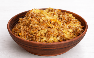Дуже радимо записати цей рецепт у сімейне пісне меню на тиждень. Гречка вариться разом з білоголовою капустою, можна з молодою, та заправляється засмажкою із цибулі й моркви. Так, усе максимально просто, але ситно і збалансовано!