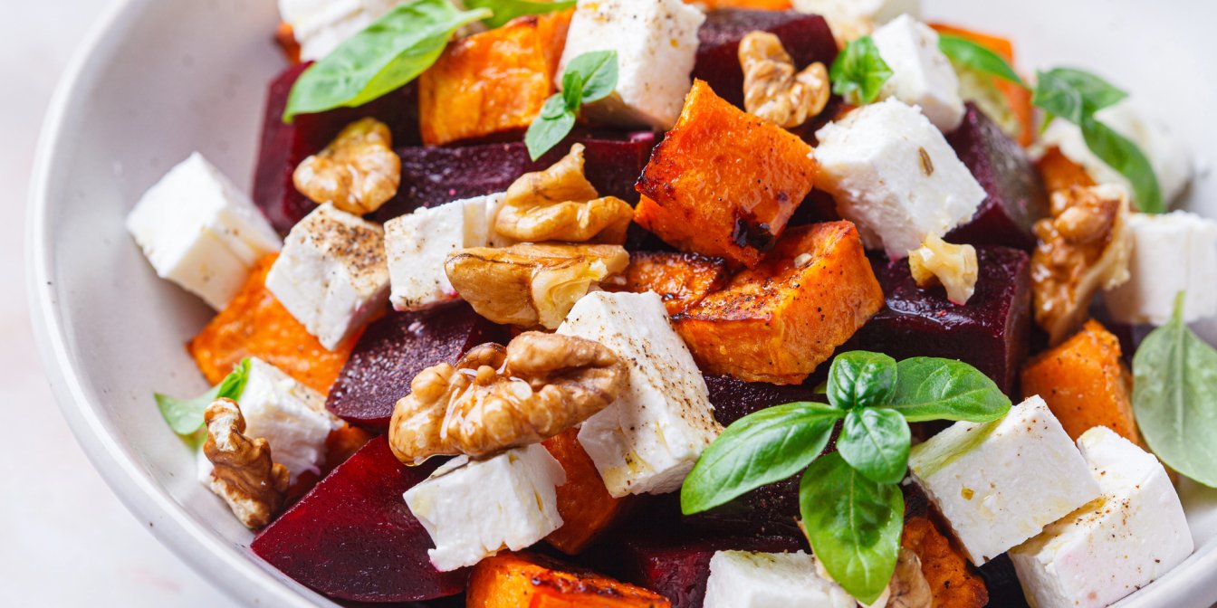 Салат з печеного гарбуза та буряка з сиром — поживна страва з пікантною заправкою