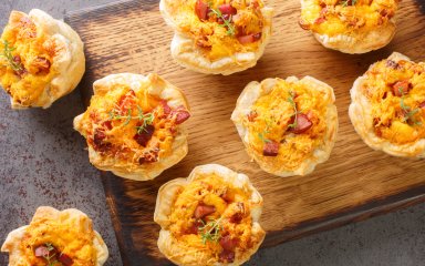Готові круасани з яйцями, сиром та шинкою — це простий спосіб використати залишки після свят і приготувати щось дійсно смачне і багате на білок. Для цього рецепта знадобиться форма для мафінів.