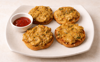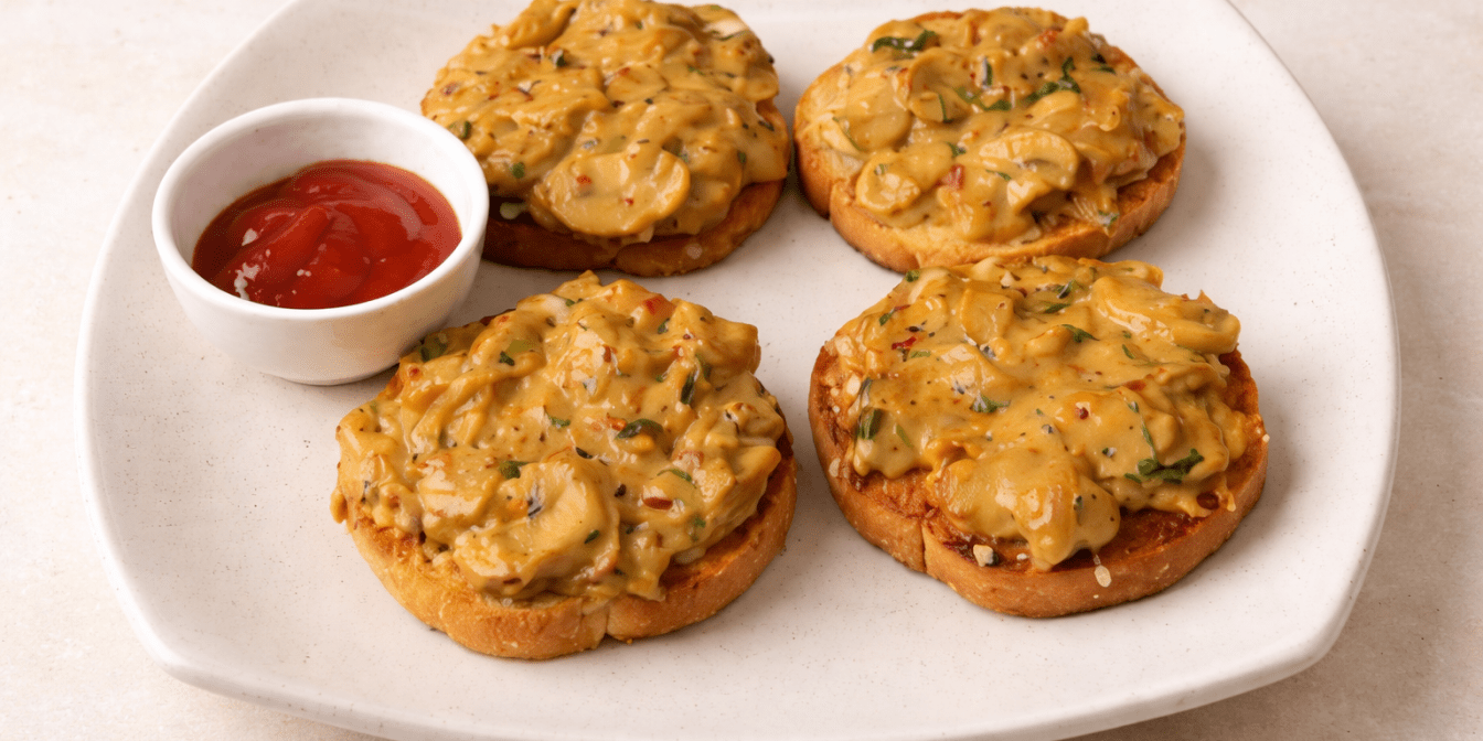 Тости з печерицями та вершковим соусом — це проста домашня гаряча закуска, яка готується за 20 хвилин. Хрусткий підсмажений хліб, насичений грибний соус із часником і легкою гостринкою та розплавлений сир зверху — усе разом дає дуже знайомий та теплий смак. Соус виходить густий, з вираженим грибним ароматом і вершковою текстурою, яка добре тримається на тості. Ідеально, коли хочеться чогось теплого, але без складного готування.