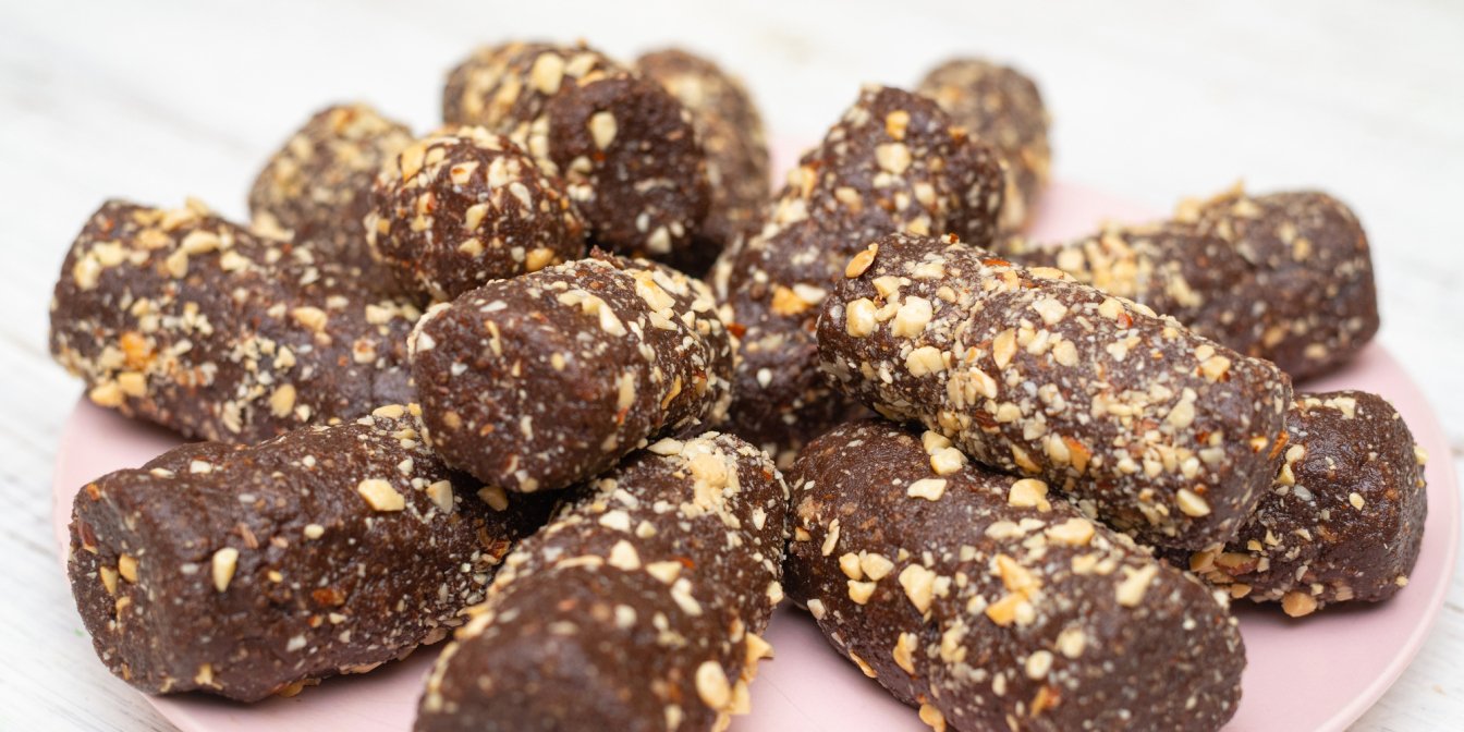 Сформуй довгасті або круглі тістечка. Викладай на пласку тарілку, на бажання посип меленими горіхами, а потім постав у холодильник на 30-45 хв.