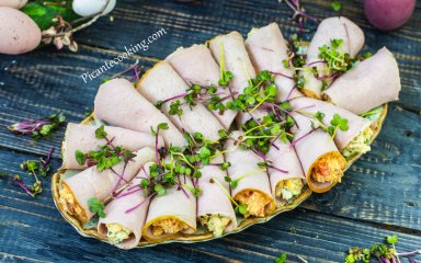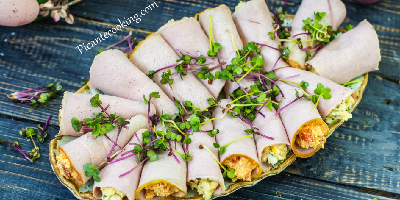 Рецепт закусочних рулетиків із шинки з яєчною та сирною пастою