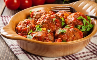 Запікаємо м’ясні кульки під томатною заливкою. Можеш змінити рецепт і зробити курячі фрикадельки під білим соусом на основі йогурту.