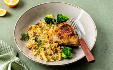 - запечена курка або альтернативне джерело білка (тофу, нут);